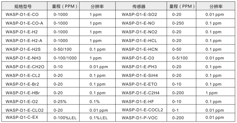 ?WASP-D1產品是一種高性能的單一有毒氣體檢測儀,能夠對各種有毒氣體進行高響應、高精確,高可靠、高穩定的測量儀器。